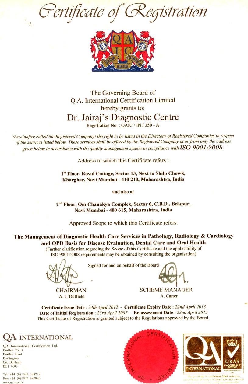 ISO 9001: 2008 and NABL ( ISO 15189 : 2007 ) Accredited Laboratory